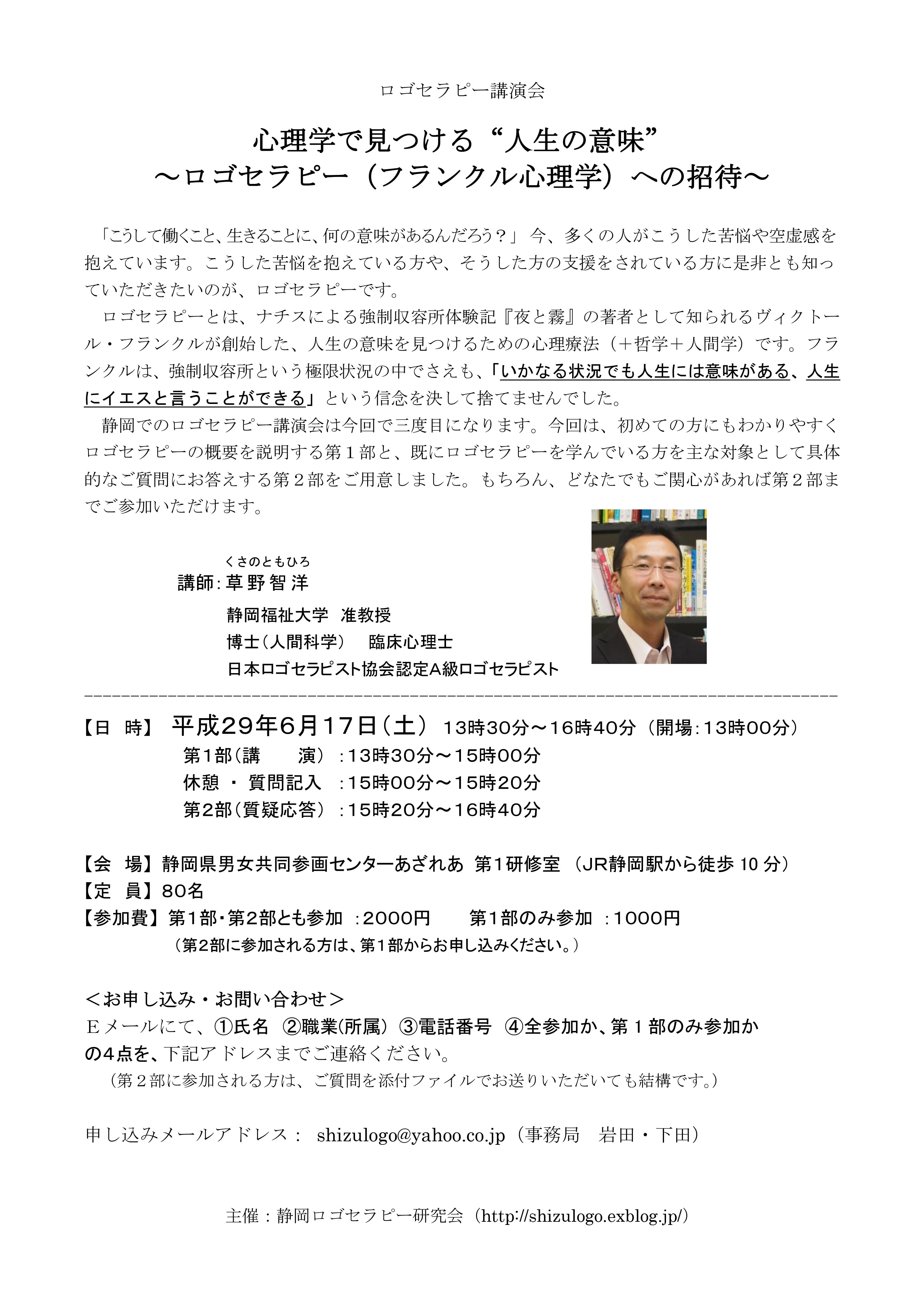 主催:静岡ロゴセラピー研究会(http://shizulogo.exblog.jp/)